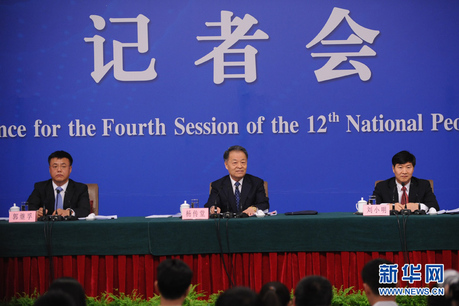 十二屆全國人大四次會議新聞中心于3月14日(星期一)10時在梅地亞中心多功能廳舉行記者會,邀請交通運輸部部長楊傳堂、交通運輸部運輸服務(wù)司司長劉小明、北京交通發(fā)展研究中心主任郭繼孚就“深化出租汽車改革與發(fā)展”的相關(guān)問題回答中外記者的提問。圖為記者會主席臺。新華網(wǎng)/中國政府網(wǎng) 陳杰 攝