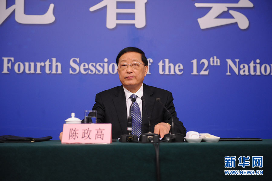 十二屆全國人大四次會議新聞中心于3月15日(星期二)10時在梅地亞中心多功能廳舉行記者會,邀請住房和城鄉建設部部長陳政高、副部長陸克華、副部長倪虹就“棚戶區改造和房地產工作”的相關問題回答中外記者的提問。圖為陳政高回答記者提問。新華網/中國政府網 陳杰 攝