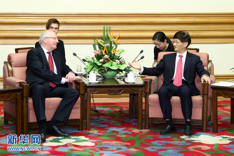 6月15日,中共中央政治局委員、中央政法委書記孟建柱在北京會見德國聯邦總理府情報國務秘書弗里徹。 新華社記者 謝環馳 攝