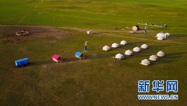 內(nèi)蒙古自治區(qū)新巴爾虎右旗克爾倫蘇木芒來(lái)嘎查黨支部書記米吉格家開辦的牧家樂(lè)(7月17日攝)。新華社記者 連振 攝