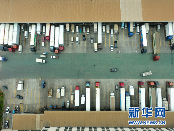 在中國-東盟海產品交易所旁的福州名城冷鏈倉庫內,運輸車輛在裝載冷凍海產品(4月11日攝)。位于福建自由貿易試驗區福州片區內的中國-東盟海產品交易所于2015年3月掛牌運營,是服務于自貿區和“一帶一路”的重要互聯網交易服務平臺。新華社記者 姜克紅 攝