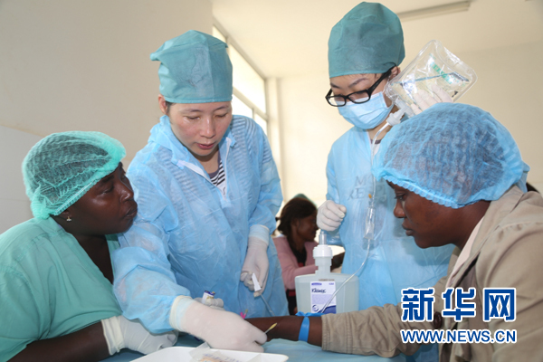 中國人民解放軍援助西非抗擊埃博拉疫情醫療隊為弗里敦中塞友好醫院開展輸液培訓活動(2014年12月10日攝)。新華社發(戴欣 攝)