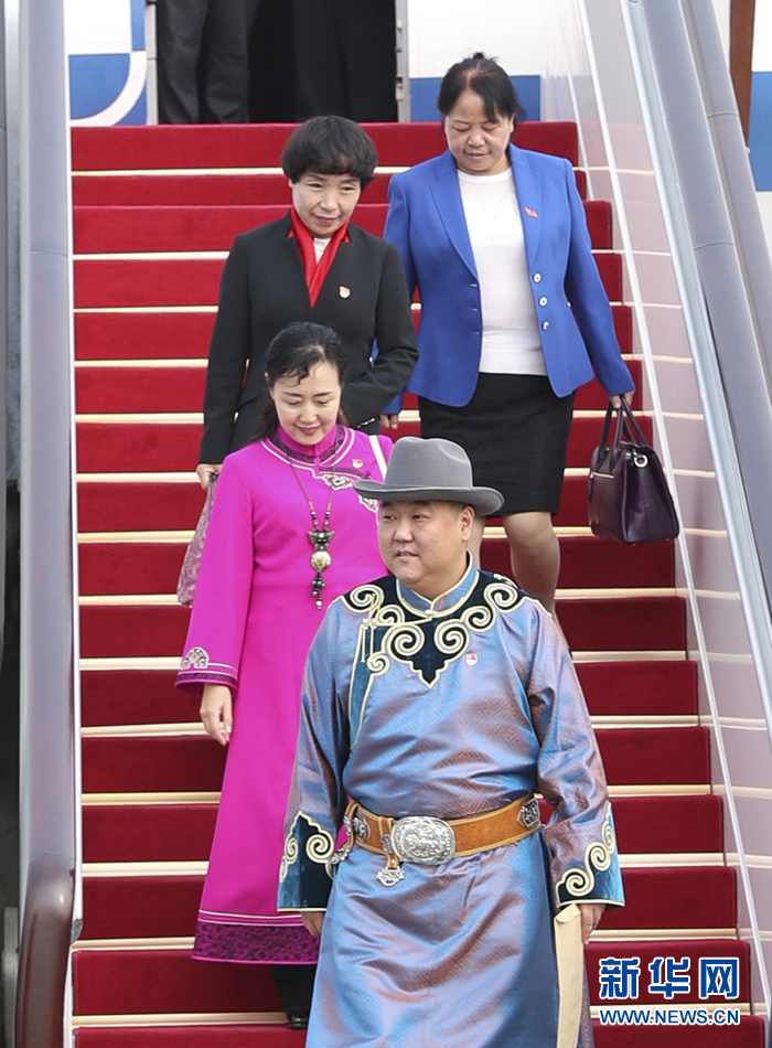 10月15日,來自內蒙古自治區的黨的十九大代表乘飛機抵達首都國際機場。這是第一個抵京的京外代表團。 新華社記者 丁海濤 攝