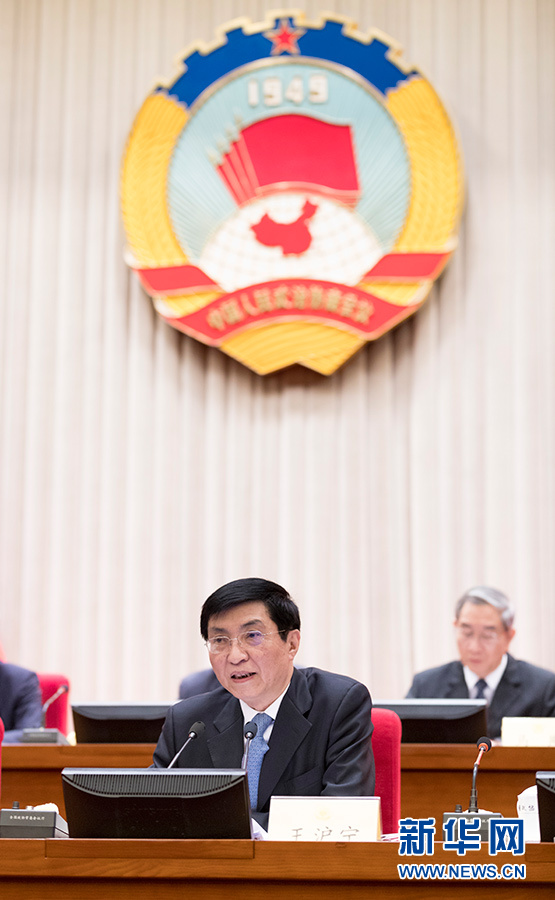 王滬寧指出,學習貫徹中共十九大精神,重中之重是學習領會習近平新時代中國特色社會主義思想,在學懂弄通做實上下功夫,并作為統攬人民政協工作的總綱,增進高度的政治認同、思想認同、理論認同、情感認同,夯實團結奮斗的共同思想政治基礎。要聚焦牢固樹立政治意識、大局意識、核心意識、看齊意識,推動參加人民政協的各黨派團體和各族各界人士自覺接受中國共產黨的領導,堅決維護習近平總書記的核心地位。要深刻理解新時代中國特色社會主義基本方略,緊密結合實際找到落實基點,切實在工作中貫徹下去、體現出來。要把學習領會習近平新時代中國特色社會主義思想同過去五年的歷史性變革結合起來,同今后工作戰略部署結合起來,準確把握其繼承性、創新性、時代性,堅持在習近平新時代中國特色社會主義思想指引下,廣泛凝聚共識、凝聚人心、凝聚智慧、凝聚力量,共同為落實中共十九大確定的目標任務而奮斗。