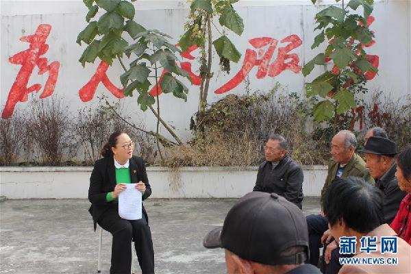 十九大代表、山東省棗莊市山亭區(qū)鳧城鎮(zhèn)千佛崖村黨支部書(shū)記李晨(左一)在村委會(huì)宣講十九大精神(10月26日攝)。新華社發(fā)(宋偉攝)