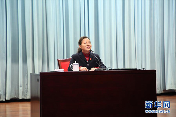 孫金娣組織“貫徹十九大,聽總書記話,永遠(yuǎn)跟黨走”黨員群眾大會(huì),并進(jìn)行宣講(11月10日攝)。 新華社記者楊紹功攝