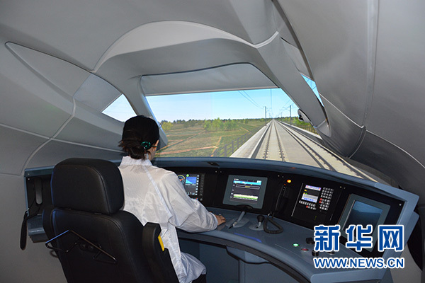 在中國通號CTCS-3實驗室體驗高鐵貼地“飛行”。據工作人員介紹,該實驗室采用半實物仿真建模方法,通過上萬公里高鐵工程的現場驗證,仿真平臺的可信度達到國際一流。新華網陳淑君攝