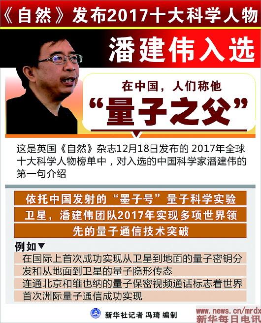 ▲圖表:《自然》發布2017十大科學人物,潘建偉入選。