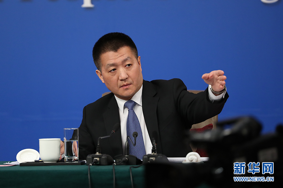 十二屆全國人大五次會議新聞中心于3月8日(星期三)10時在梅地亞中心多功能廳舉行記者會,邀請外交部部長王毅就“中國的外交政策和對外關系”的相關問題回答中外記者的提問。圖為記者會主持人陸慷。新華網/中國政府網 翟子赫 攝