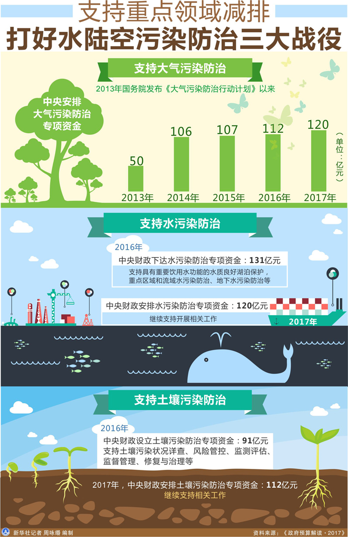 [兩會·政府預算解讀]支持重點領域減排 打好水陸空污染防治三大戰役