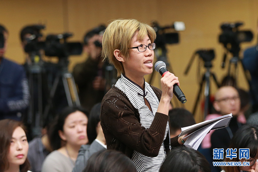 3月11日,十二屆全國人大五次會議新聞中心舉行記者會,邀請工業(yè)和信息化部部長苗圩、副部長辛國斌和總工程師、新聞發(fā)言人張峰就“推進(jìn)實(shí)施‘中國制造2025’”的相關(guān)問題回答中外記者的提問。圖為新加坡海峽時報記者提問。新華網(wǎng)/中國政府網(wǎng) 傅義洲 攝