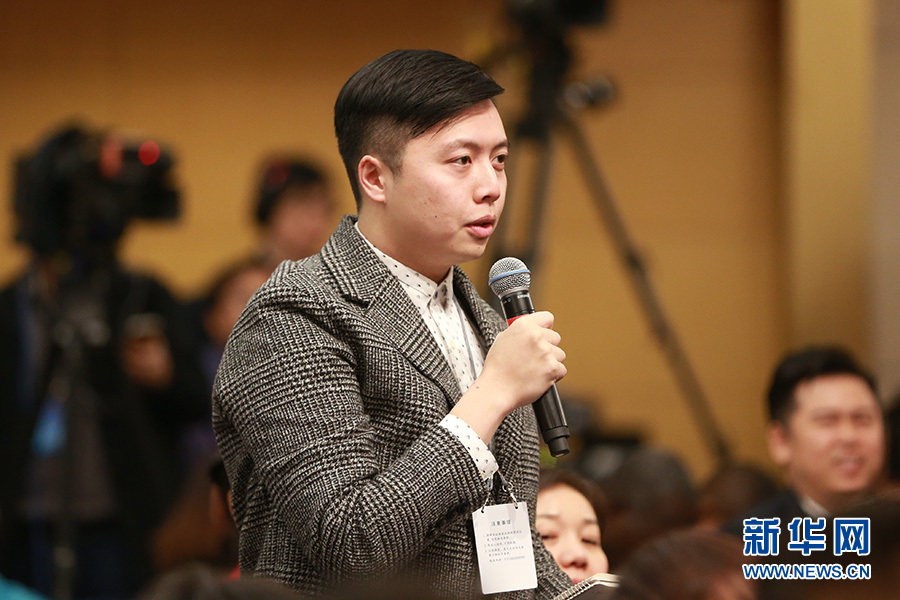 3月11日,十二屆全國人大五次會議新聞中心舉行記者會,邀請科技部部長萬鋼、秘書長徐建培就“2016年創新驅動發展戰略實施進展成效和2017年重點工作”的相關問題回答中外記者的提問。圖為臺灣旺旺中時媒體集團旺報記者提問。新華網/中國政府網 王健 攝