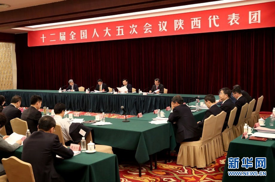 3月14日,十二屆全國人大五次會(huì)議陜西代表團(tuán)全體會(huì)議向媒體開放。新華網(wǎng)發(fā)(王超 攝)
