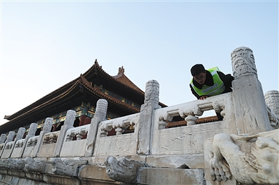 單霽翔表示,隨著故宮開放面積不斷擴(kuò)大,清場(chǎng)人員也不斷增加。如今,每天700余名工作人員同時(shí)開始檢查,涵蓋故宮開放區(qū)域的每個(gè)角落。包括室外所有外露文物(如殿外銅缸)、附屬設(shè)施、屋脊門廊等,室內(nèi)的所有文物、展室角落、展柜上下等。