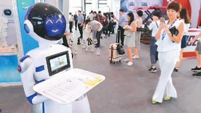 中國(guó)-東盟博覽會(huì)上的機(jī)器人服務(wù)員。新華社發(fā)