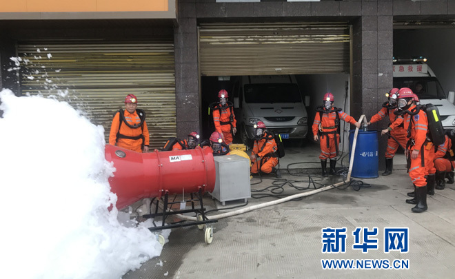 邵陽市礦山救護支隊隊員在日常技能訓練。新華網 于子茹 攝