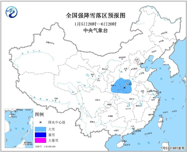中央氣象臺1月5日18時再次發(fā)布暴雪藍色預警。