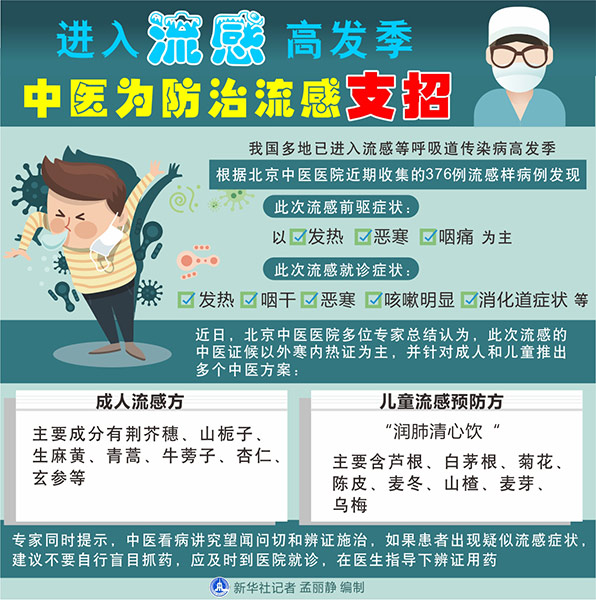 圖表:進入流感高發(fā)季 中醫(yī)為防治流感支招 新華社記者 孟麗靜 編制