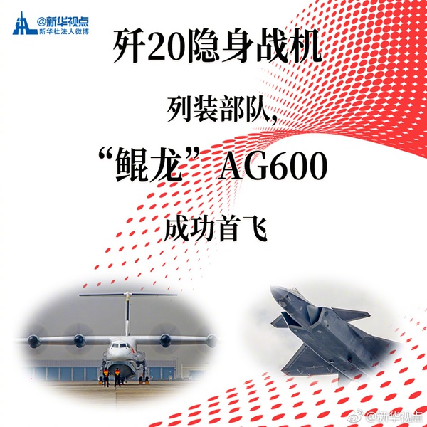 新華網北京1月13日電 朱日和沙場點兵,首艘國產航母、萬噸大型驅逐艦首艦下水,殲20隱身戰機列裝、“鯤龍”AG600首飛……2017年,我國國防科技工業發生了哪些大事?一起為國防事業科研創新點贊!(據“新華視點”微博報道)