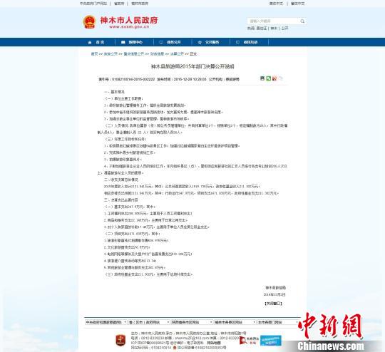 神木旅游局2015年部門決算公開(kāi)說(shuō)明。網(wǎng)頁(yè)截圖