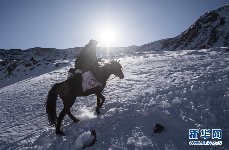巡診隊醫生葉力夏提縱馬翻越喬拉克達坂(2017年12月15日攝)。 新華社記者 江文耀 攝