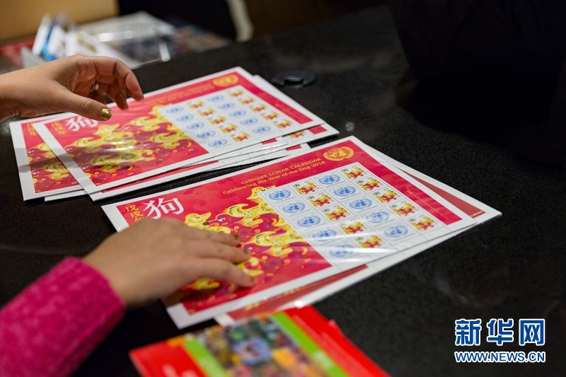 2月7日,在位于紐約的聯合國總部,一名游客購買狗年郵票。新華網記者李木子 攝