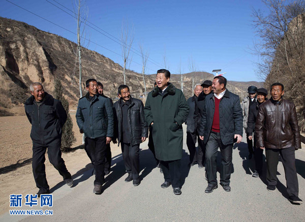2013年2月初,習近平來到自古“瘠苦甲于天下”而今依然是連片特困地區(qū)的甘肅定西、臨夏。他不顧山高溝深,道路陡峭,黃土飛揚,繞過九曲十八彎,先后到海拔2400多米的定西市渭源縣元古堆村和海拔1900多米的臨夏回族自治州東鄉(xiāng)族自治縣布愣溝村,入戶看望老黨員和困難群眾。