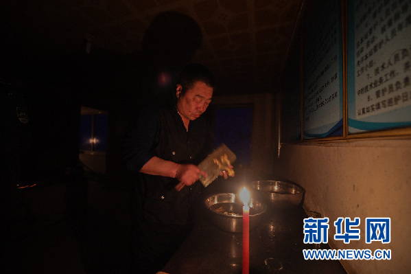 燭光搖曳,白玉華一一清洗凍白菜、土豆和鮮肉,這是他年夜飯的所有食材。這幾天喝水成了問(wèn)題,用的水是他從20公里之外的河溝中鑿取的冰塊。兩天前,站上的柴油發(fā)電機(jī)壞了,不能抽取井水。大雪封山,車(chē)行困難,機(jī)器無(wú)法維修。“這機(jī)器也知道過(guò)年給自己‘放假’。”白玉華苦笑地?fù)u搖頭。