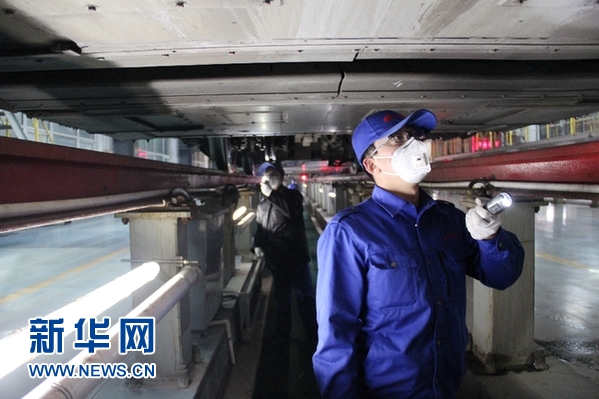 工作人員介紹說,所里的作業(yè)小組一般由4人組成,2人負責車內(nèi)設施、司機室設備、車載信息系統(tǒng)、車頂設備檢查及相關性能試驗,2人負責車體、裙板、底板、轉向架、鉤緩連接、制動、車端連接等下部檢查,一趟下來需要個把小時。