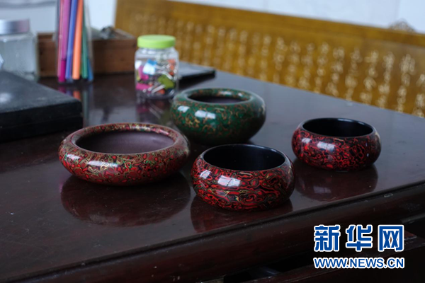 “菠蘿漆”技藝制成的茶碗表面,有形似漣漪的花紋。新華網 卓越 攝