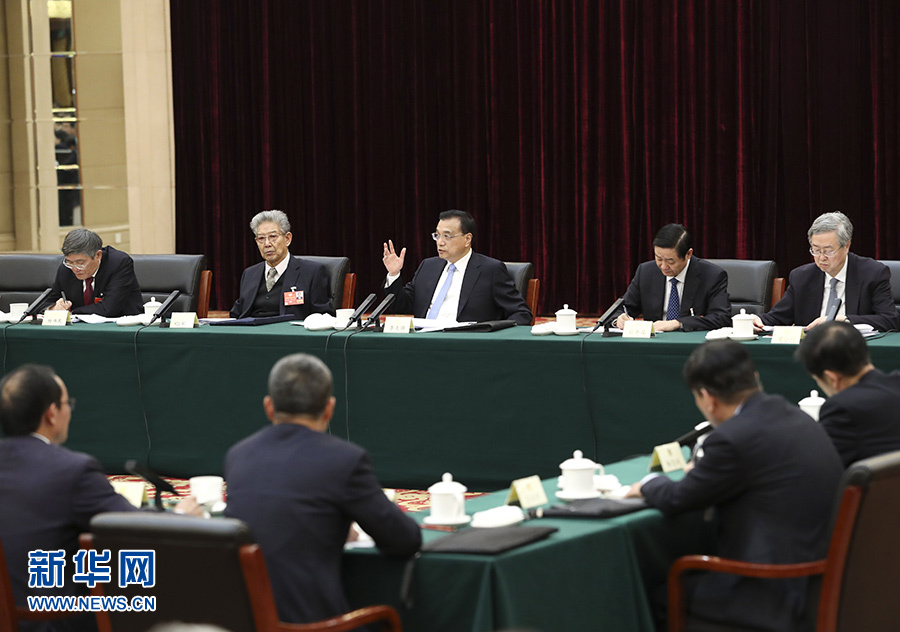 3月4日,中共中央政治局常委、國務院總理李克強看望出席全國政協十三屆一次會議的經濟、農業界委員并參加討論。 新華社記者 龐興雷 攝
