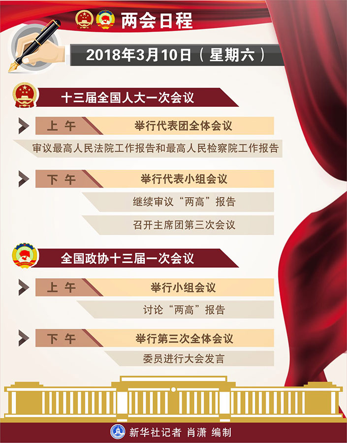 3月10日:人代會繼續審議“兩高”報告 政協舉行第三次全體會議