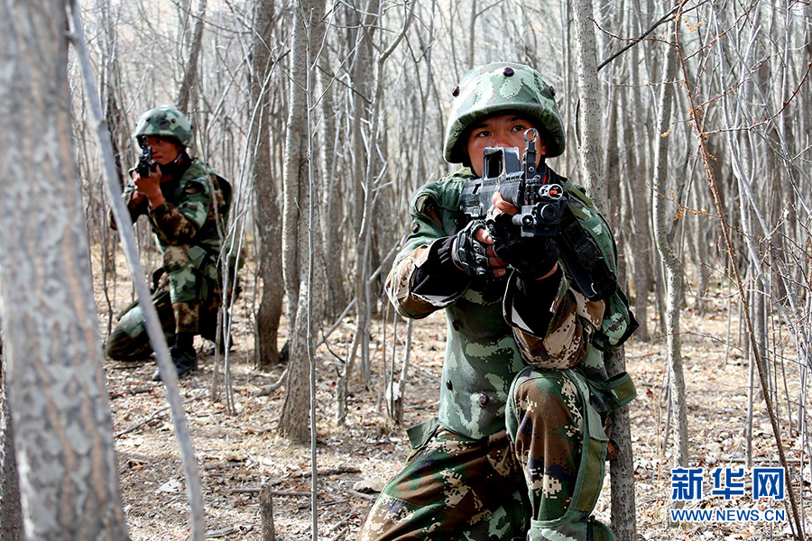 這是特戰(zhàn)隊員正在進(jìn)行紅藍(lán)對抗科目訓(xùn)練。新華網(wǎng)發(fā) 余文彬 攝