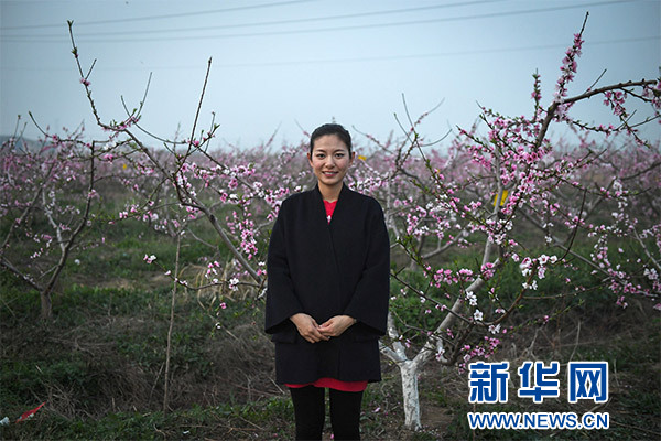宋姍姍在泗陽縣南劉集鄉(xiāng)趙陳村“桃花源記”項目桃林前留影(3月31日攝)。新華社記者 季春鵬 攝