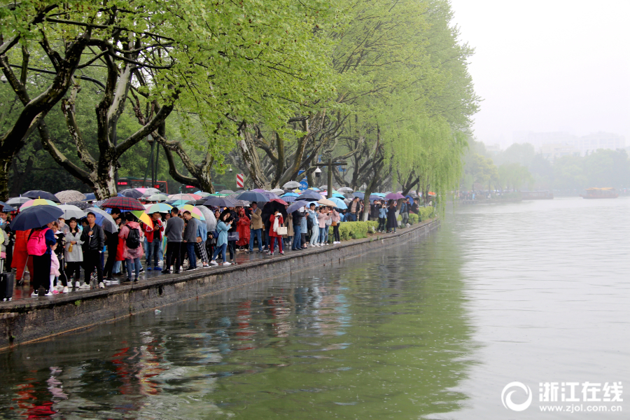 杭州:清明時節(jié)雨紛紛 西湖游客雨中游
