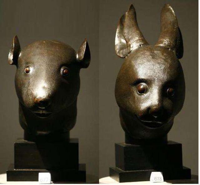 這原為北京圓明園大水法十二生肖獸首噴泉構件中的兩件,1860年英法聯軍火燒圓明園后流失。2009年,這兩件獸首曾在法國巴黎被拍賣,引起國際社會關注和譴責,中方也明確表示了反對意見。這兩件文物由國家博物館收藏。