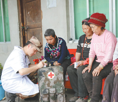 “這兩年,我的關(guān)節(jié)炎經(jīng)常復(fù)發(fā),全靠部隊(duì)的醫(yī)生送藥。雖然我叫不出他們的名字,但哨所的每個(gè)人都是好人,像自己的孩子那么熟悉。”4月10日下午,當(dāng)邊防連的醫(yī)生陽運(yùn)川來到村里義務(wù)巡診時(shí),次旺卓瑪用藏語對(duì)記者說。記者 鄧建勝 瓊達(dá)卓嘎
