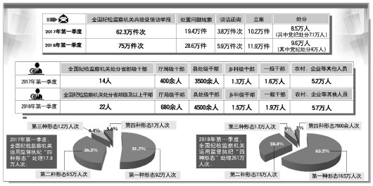 4月18日,中央紀委國家監委通報稱,2018年第一季度,全國紀檢監察機關共接受信訪舉報75萬件次,立案11.9萬件,黨紀處分8萬人。