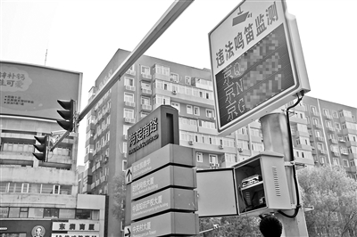 昨天下午,北青報記者來到黃莊路口西北角,周圍鳴笛聲不斷,嘈雜一片。很快,西北角路口處懸掛的LED顯示屏上,就出現了違法鳴笛車輛的車牌號信息。