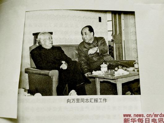 王郁昭向萬里同志(左)匯報(bào)工作。來源:《往事回眸與思考》一書