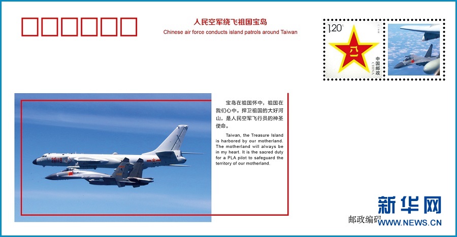 紀念封、宣傳片所用戰機巡航影像,均為人民空軍飛行員執行繞島巡航任務中航拍的。“寶島在祖國懷中,祖國在我們心中。捍衛祖國的大好河山,是人民空軍飛行員的神圣使命。”7枚紀念封傳遞了空軍飛行員這一共同心聲。