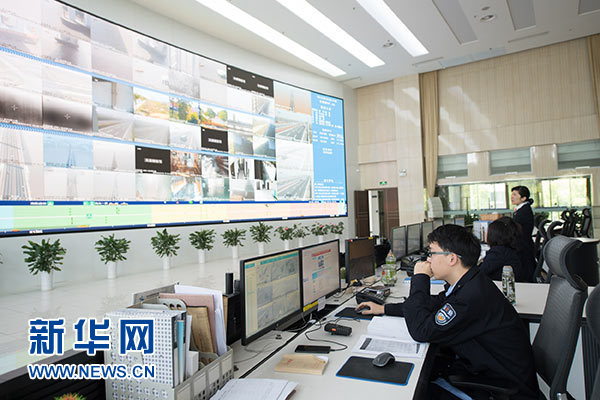 工作人員在杭州灣跨海大橋監(jiān)控中心進(jìn)行實(shí)時(shí)監(jiān)控(4月19日攝)。新華社記者 翁忻旸 攝