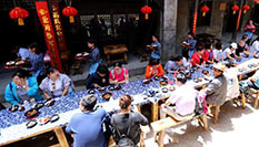 鄉(xiāng)村古寨擺長桌宴迎賓朋