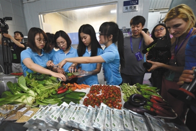 昨日,志愿者將實驗艙內的植物帶出艙外展示。