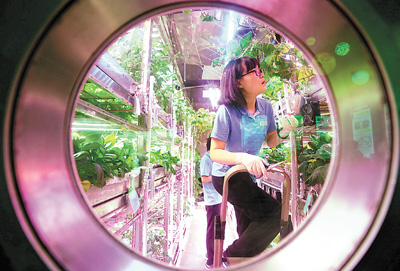 劉紅介紹,“月宮365”實(shí)驗在世界上首次建立了系統(tǒng)長期穩(wěn)定運(yùn)行的生物調(diào)控技術(shù),并通過實(shí)驗過程中不同代謝水平的乘員組換班更替、停電及設(shè)備故障沖擊等突發(fā)狀況驗證了該技術(shù)的有效性;分析了不同工作狀況下生物再生生命保障系統(tǒng)的穩(wěn)定性,明確了影響生物再生生命保障系統(tǒng)的可靠性的關(guān)鍵因素;發(fā)現(xiàn)了在幽閉空間中自然光制度變換對人的生物節(jié)律和情緒的影響規(guī)律, 發(fā)明了模擬自然光變換調(diào)節(jié)人體生物節(jié)律和情緒的技術(shù)和設(shè)備;并建立了植物長期連續(xù)高效栽培技術(shù)、營養(yǎng)液長期循環(huán)利用凈化和調(diào)配技術(shù)。
