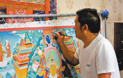 “心靜下來才可以作畫,進入狀態后我可以連續畫4個小時。一幅唐卡可以保存流傳千年,作畫的人和歷史能夠融為一體。”在桑吉東知眼里,“每次創作都是文化的傳承,都是心靈的凈化。”(記者 袁泉)