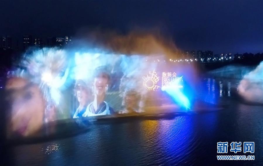 市民在貴陽市觀山湖公園內(nèi)體驗(yàn)數(shù)谷之夜活動中的水幕電影(5月22日攝)。新華社記者劉續(xù) 攝