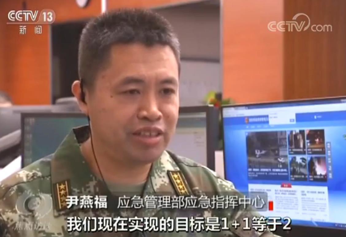 應急管理部應急指揮中心尹燕福表示:“短短一個月的時間,我們現(xiàn)在實現(xiàn)的目標是1+1等于2,已經(jīng)形成了一個合力,形成了一個拳頭,形成了一個整體。下一步會有這樣一個大的系統(tǒng),我們正在規(guī)劃,正在組織研究論證國家的應急管理信息網(wǎng)絡體系,最后整個信息的融合,會形成一種物理性到化學性的反應,就是1+1大于2的目標。”