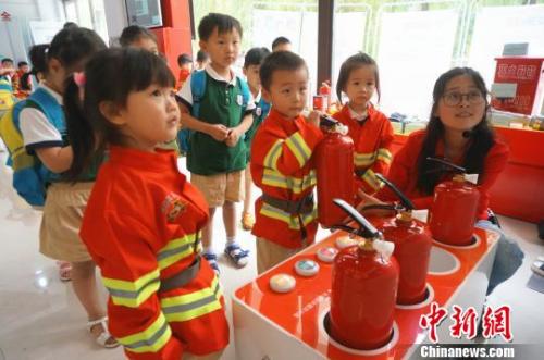 資料圖:兒童節(jié)孩子們穿上迷你消防服,體驗?zāi)M滅火。 韓章云 攝