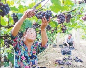 陽(yáng)原縣東城鄉(xiāng)五馬坊葡萄大豐收,農(nóng)戶(hù)正在采摘葡萄。仝輝 攝/光明圖片